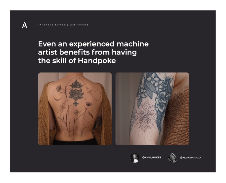 Handpoke is about mindful tattooing, creativity, and self-expression. It is perfect to learn the basics of equipment use, Handpoke technique and safety, providing essential knowledge and skills to start in tattooing
